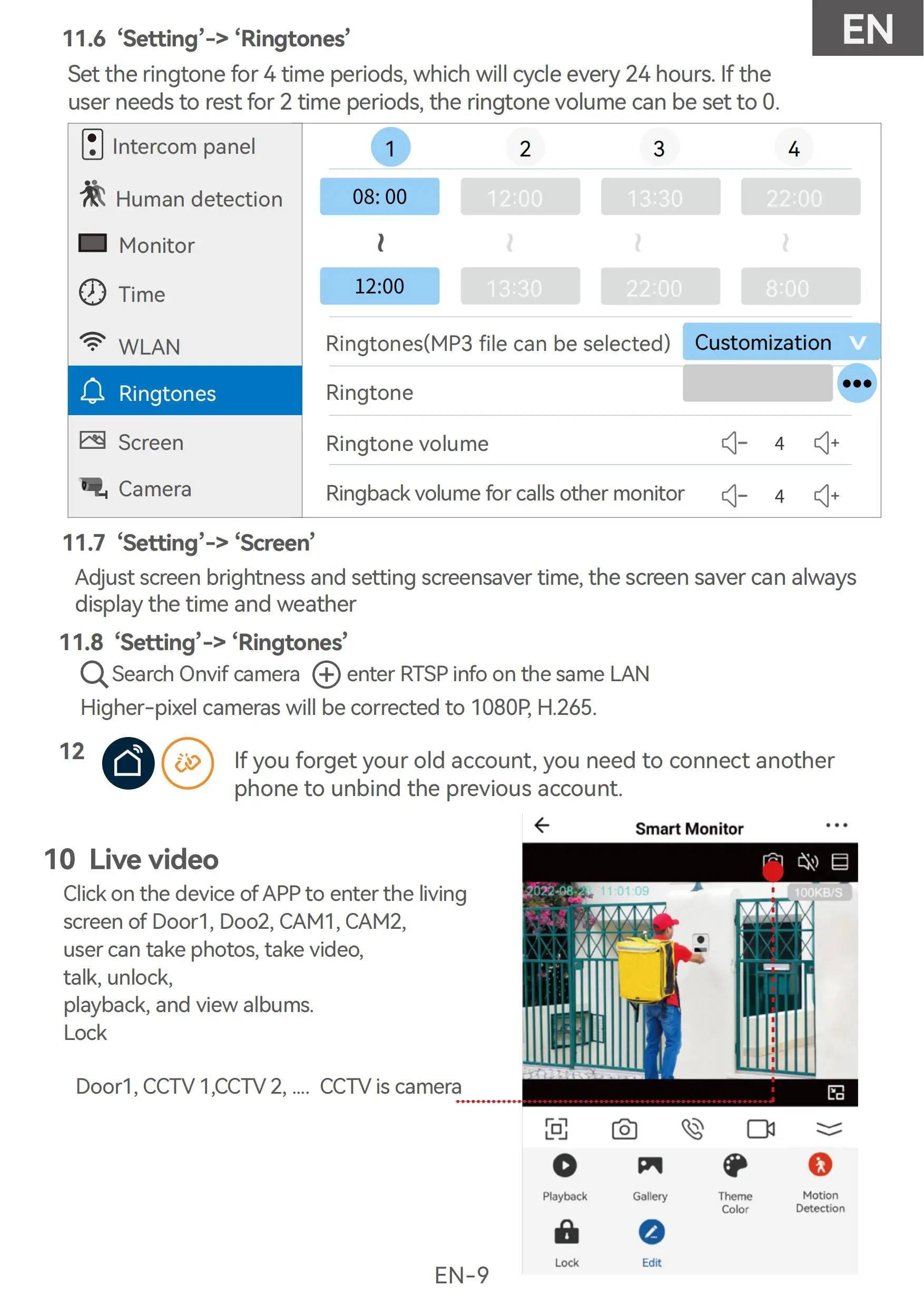 This device has various unlocking methods. You can unlock by password, monitor, IC card, APP and screen. It is very convenient and flexible.